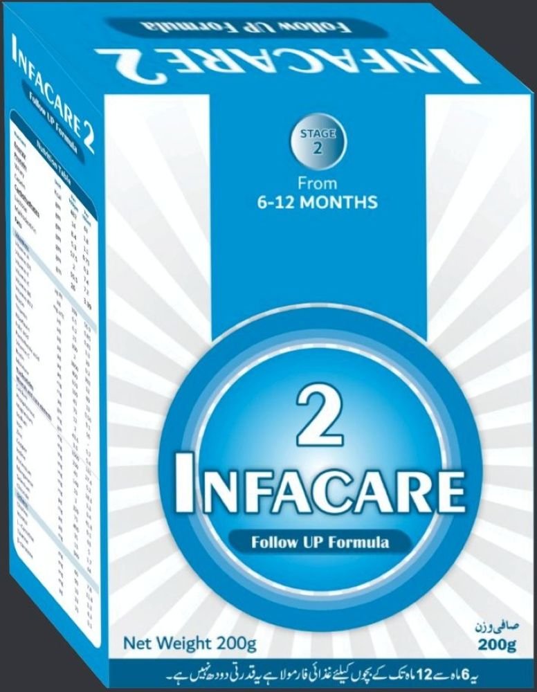 Infacare Stage 2 - Soft Pack Infacare Stage 2 (200 gm, Soft Pack) milk formula, or follow-on formula, is for babies aged from 6 months to 1 year. Its purpose is to complement the introduction of semi-solid foods to babies after 6 months of age to provide extra nutrients like iron and vitamins for their rapid growth. This Stage 2 milk formula adjusts the fats and proteins balance, which is required after 6 months of age, and supports immune and cognitive development as they transition from solely milk to semi-solids.